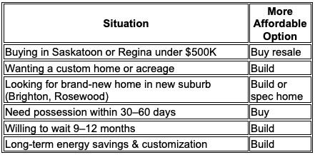š¬ Have more questions about building vs buying in your specific Saskatchewan neighbourhood? Letās chatāweāre here to help you make the move thatās right for you.