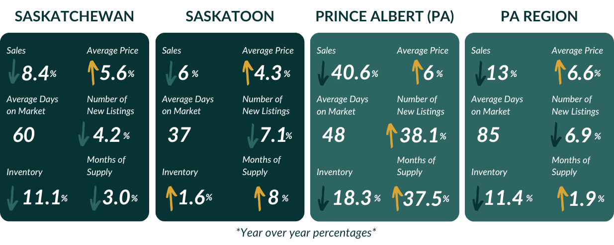 Prince Albert Region: 80 Sales, benchmark price $263,800 (+6.6%YoY), 134 active listings.